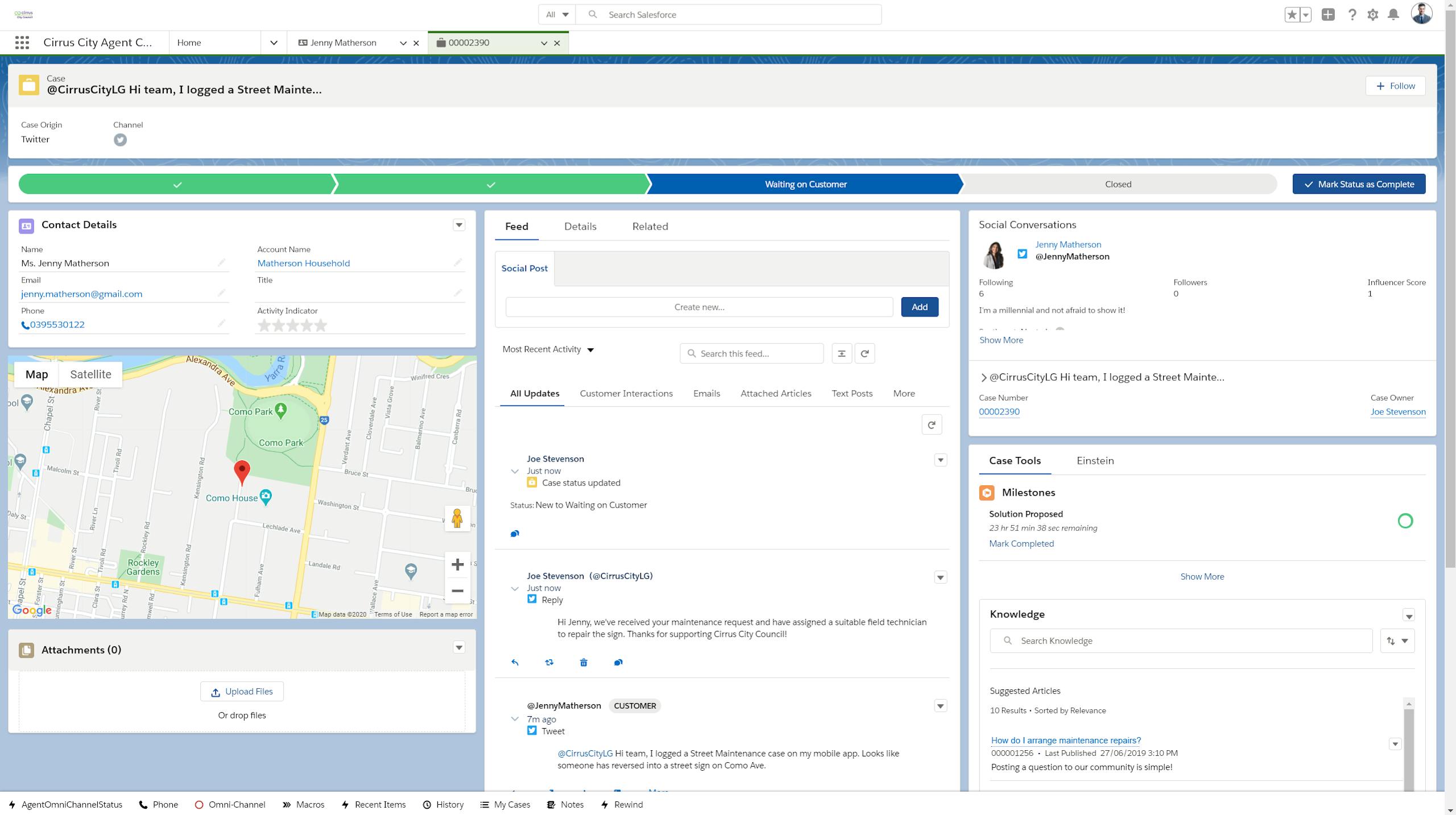 Pop the callers details prior to the service agent answering the call. Through the power of Mulesoft, intelligently consume and connect all citizen data from systems such as Property, Rates, Assets and Finance - enabling service agents with that golden record or true single view of the citizen. Seamlessly connect telephony, email, social channels and more all in a single screen. Foster staff productivity and true world-class citizen experiences.