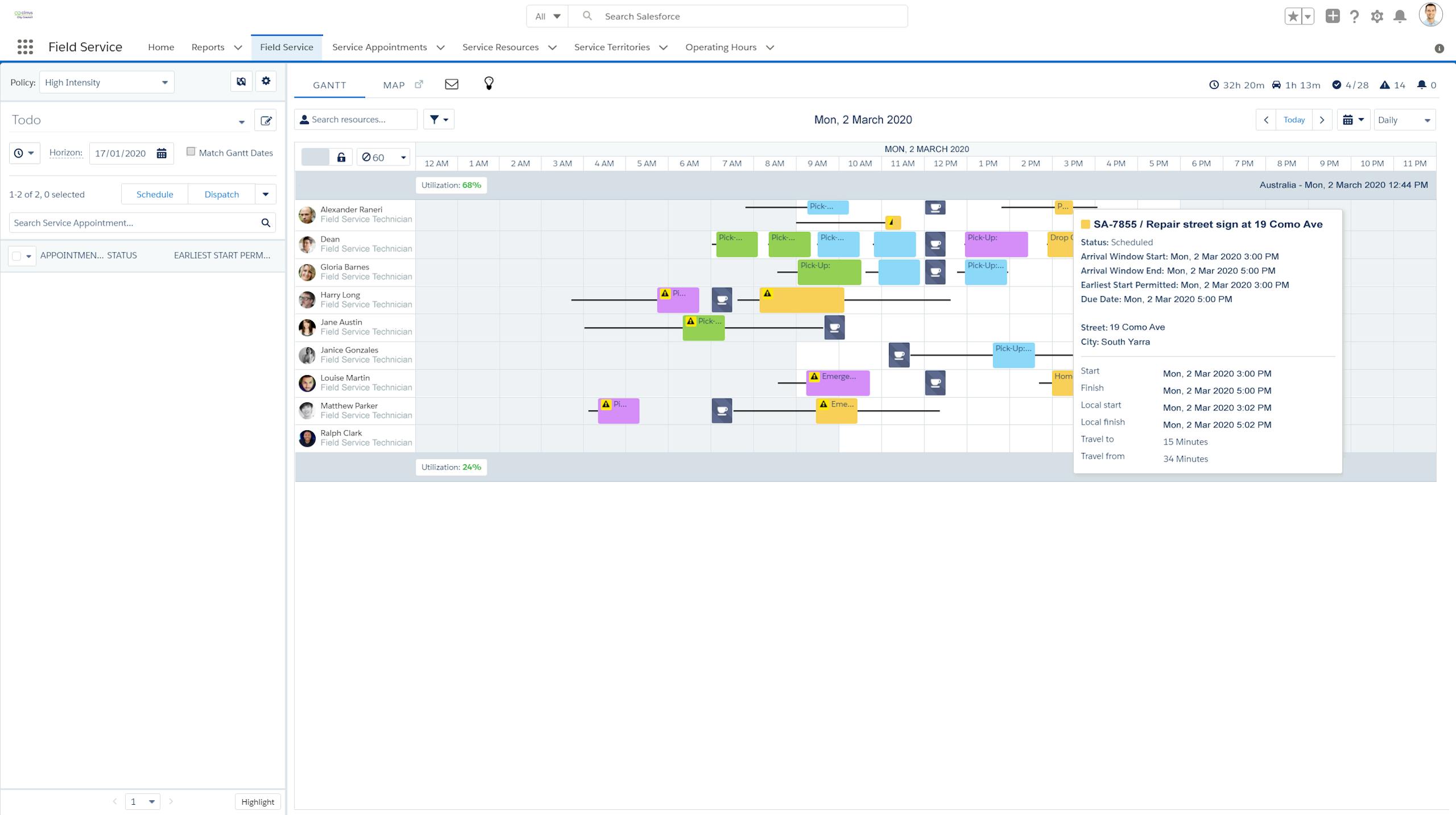 Automate appointment booking and resource scheduling. Assign service requests and dispatch vehicles based on field agents' availability, capacity, capability and location.